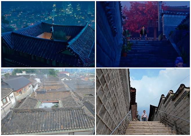 대표적인 장소는 북촌 한옥마을입니다. 루미와 진우가 몰래 만나 지붕 위를 거닐던 곳이죠. 듀엣곡 '프리'를 부른 명장면도 이곳에서 탄생했습니다.