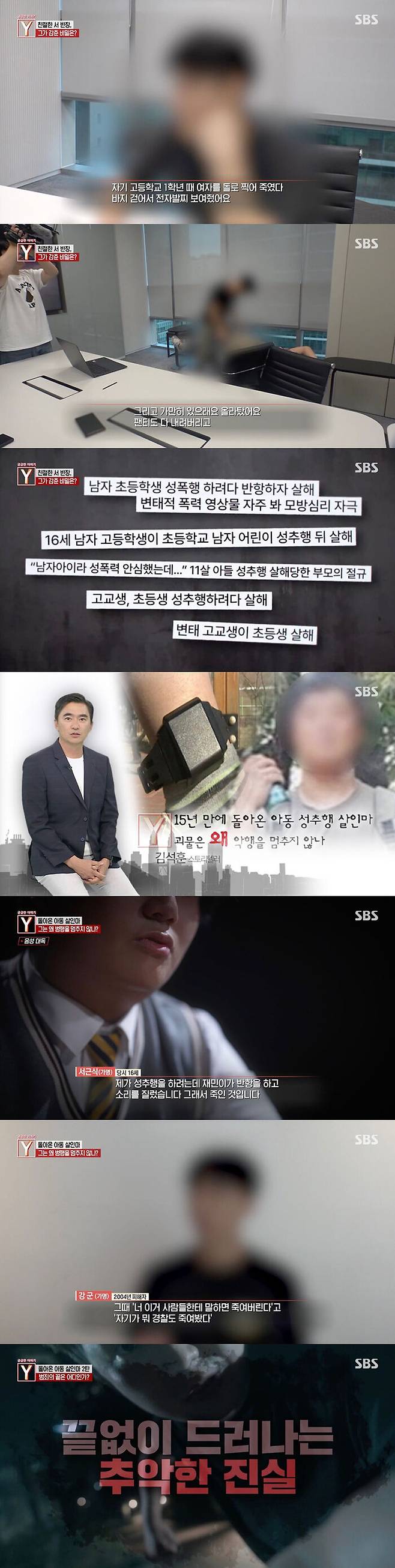 29일 방송된 SBS '궁금한 이야기 Y'에서는 돌아온 동성 아동 성추행 살인마 서 씨를 추적했다.