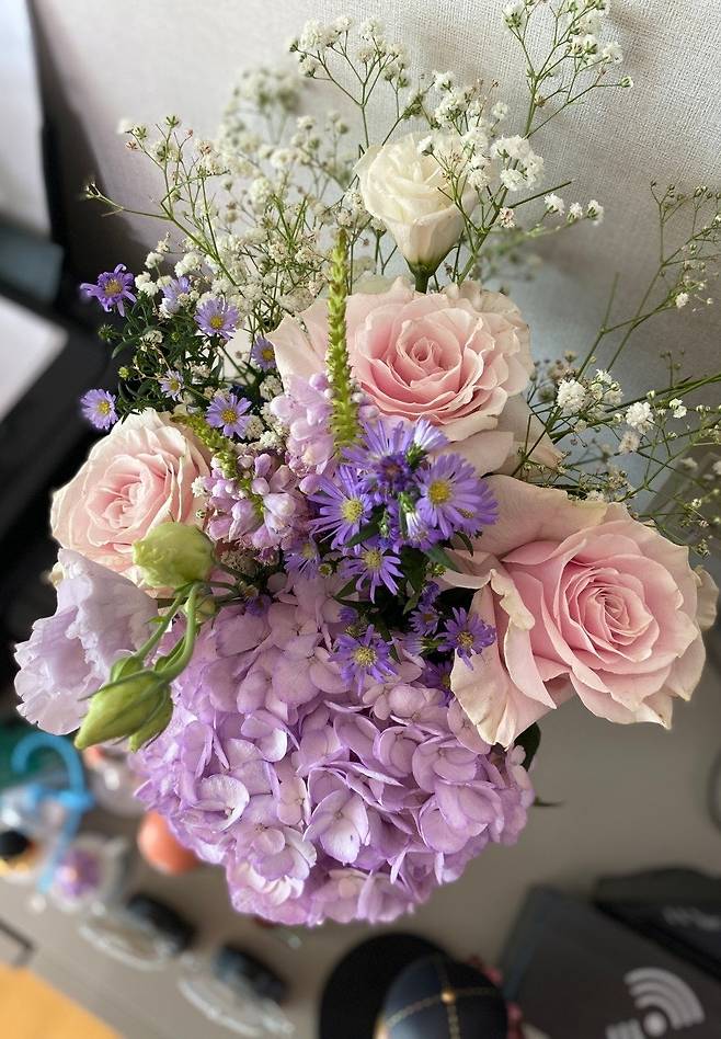 | ▲ 수국 꽃다발 첫째가 친구 결혼식에서 가져온 꽃다발. |
