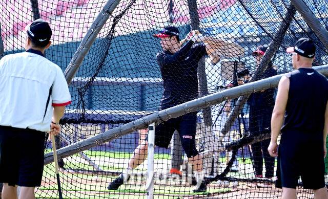 긴장한 모습으로 가볍게 배트를 돌리기 시작한 홍창기는 타구의 질보다 감각을 살리는 데 중점을 두는 모습이었다. 20여 분간 타격 훈련을 한 홍창기의 표정은 매우 밝았다. 그의 얼굴은 미소로 가득했고, 코치진들과 이야기를 나눈 뒤 더그아웃으로 들어가는 발걸음도 가벼웠다.
