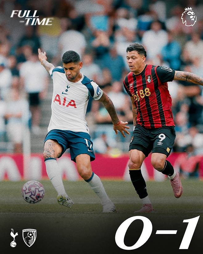 토트넘이 30일(한국시각) 영국 런던 토트넘홋스퍼스타디움에서 열린 본머스와의 2025~2026시즌 잉글랜드 프리미어리그(EPL) 3라운드 홈 경기에서 무기력한 경기력으로 일관한 끝에 0대1로 패했다. 전반 5분 이바니우송에게 허용한 실점이 그대로 결승골로 남았다.