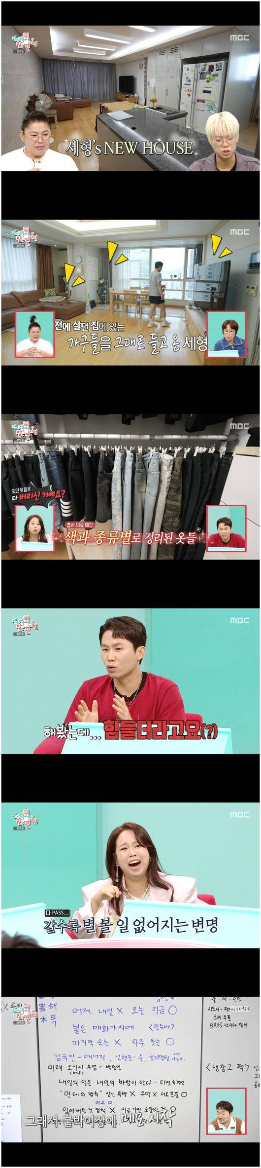 양세형은 “남들 주고, 의류수거함에 넣기도 했다”라고 전했다. 이어 그는 여전히 화이트 보드에 계획, 도전, 할 일, 데일리 스케줄을 적은 벽면을 빠짐없이 들여다보고 있었다. 양세형은 “바리스타 자격증은 땄다. 타로 자격증은 내가 할 필요가 없는 것 같아서, 안 한다. 유튜브도 해 봤는데 구독자 늘리기가 안 되더라. 그래서 저는 도전에 의의를 둔다”라고 말했다.