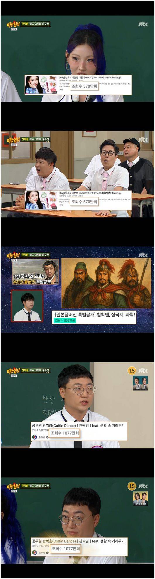 30일 방영한 JTBC 예능 '아는 형님'에서는 유튜버 충주맨, 궤도, 이사배가 출연했다.
