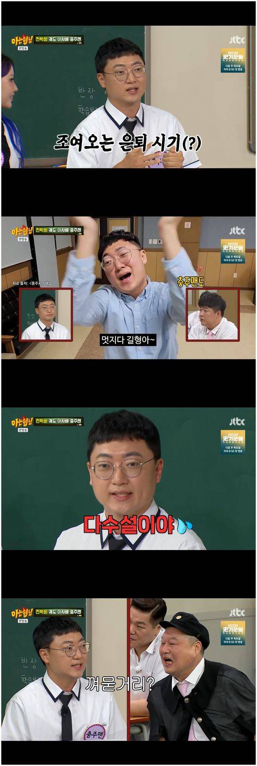 '아는 형님' 공무원 유튜버 충주맨이 서바이벌 출연을 후회한다고 밝혀 모두를 놀라게 했다.