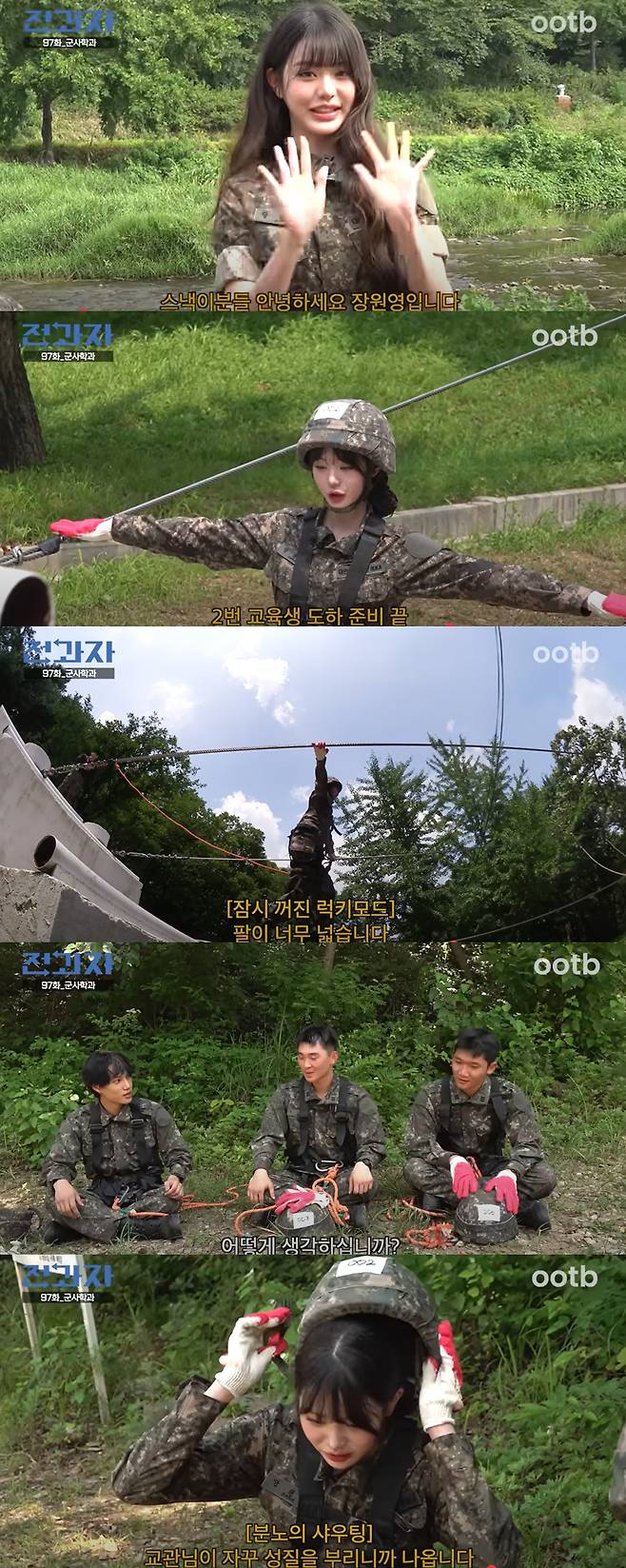 27일 유튜브 채널 'ootb 스튜디오'를 통해 '전과자' 시즌6 방학 특별편이 공개됐다. 공개된 영상에는 장원영이 게스트로 깜짝 등장, 엑소 카이와 함께 군사학과 병영 체험을 하는 모습이 담겼다.