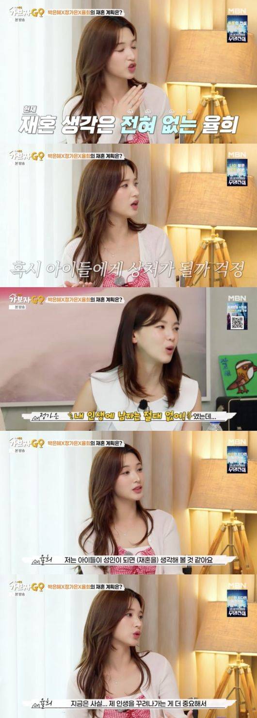 30일 방송된 MBN ‘가보자GO’ 시즌5에는 박은혜, 정가은, 율희가 출연해 이혼과 육아, 그리고 싱글맘으로서의 삶을 주제로 이야기를 나눴다.