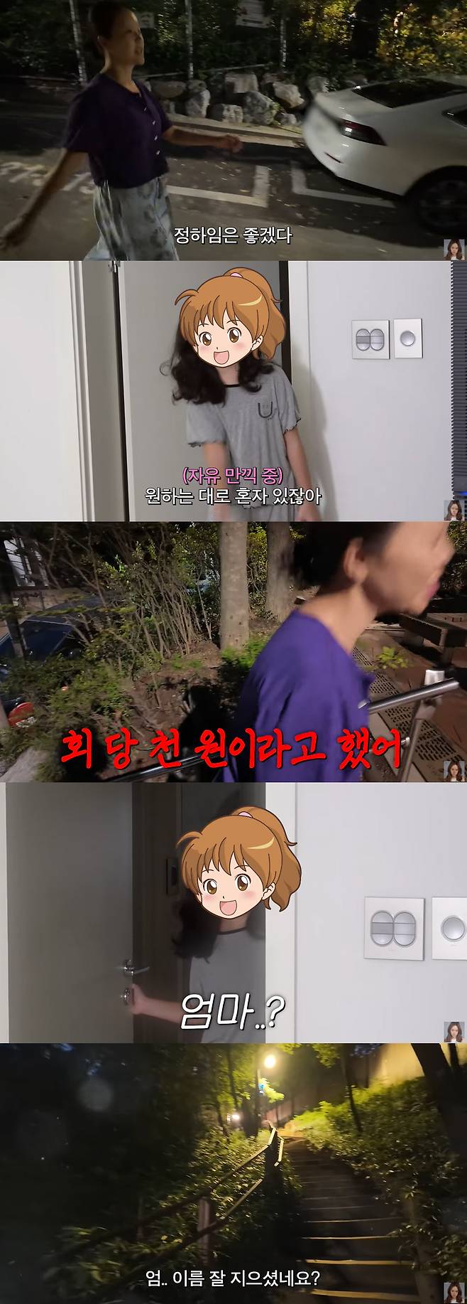 걷기 운동을 하던 중 백지영은 "정하임은 좋겠다. 원하는 대로 혼자 있잖아. 설거지를 세 번이나 해서 돈도 벌고 자유시간도 가졌다"며 웃었다.