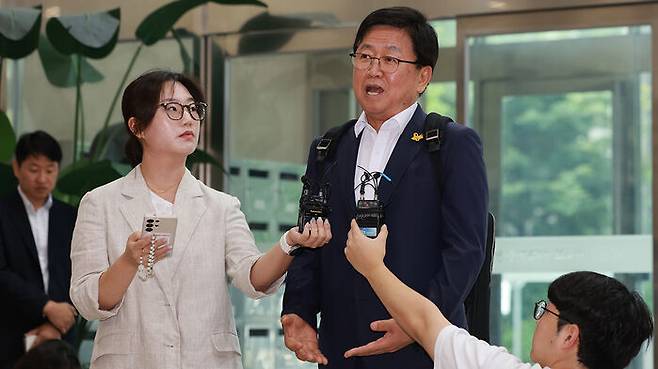 ▲ 취재진 질문에 답하는 최교진 교육부 장관 후보자