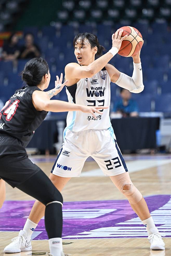 김단비가 구심점이 된 우리은행은 이명관과 이민지가 24점을 합작하며 웃었다.