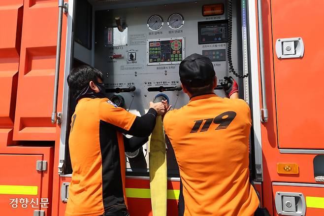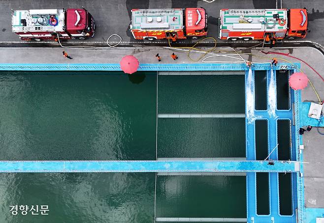 ‘최악 가뭄’ 전국 소방차 모여든 강릉 홍제 정수장[현장 화보]