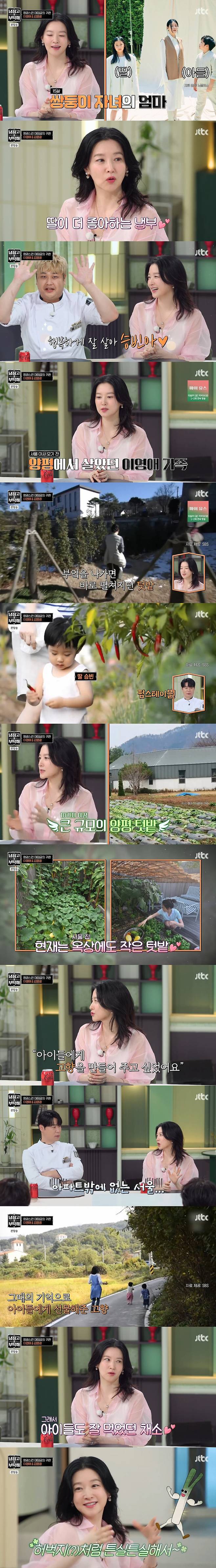 이영애는 '직접 재배해서 먹으면 다르냐'는 질문에 "차원이 다르다. 당근을 키우면 잎사귀 향이 너무 좋다. 아이들이 채소를 잘 먹었다. 파를 키웠는데 파가 걸어가는 것 같았다. 그런 표현을 쓸 수 있을 정도로 파가 근육 같더라. 허벅지처럼 튼실튼실 하다"며 웃었다.