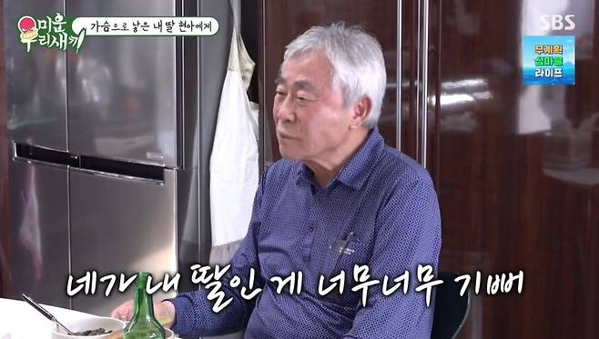 조현아는 "'엄마가 돌아가셨는데 새아빠랑 산다고?'라고 생각할 수 있는데, 난 같이 사는 게 당연한 거였다"라며 아빠의 마음은 어땠는지 물었다. 이에 아빠는 "난 고민 좀 했었다. 지금도 애들한테 짐이 되는 건 아닌가 생각한다"라며 미안한 마음을 털어놓았다.