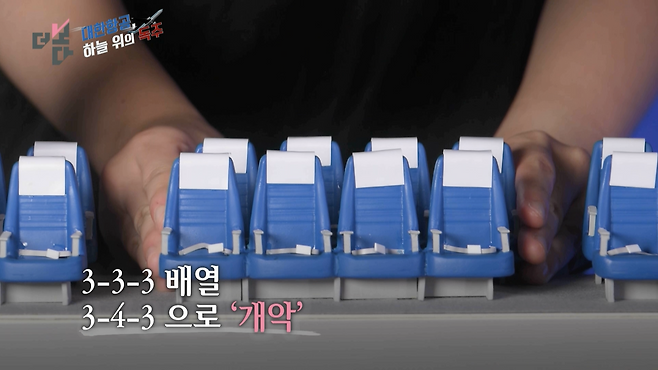 그러기 위해선 의자 폭을 3cm씩 줄여야 하고, 통로도 좁혀야 합니다.