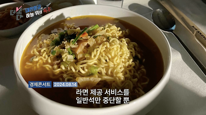"라면 제공 서비스를 일반석만 중단할 뿐, 비즈니스와 1등석의 경우 그대로 유지한다고 밝혔기 때문입니다."