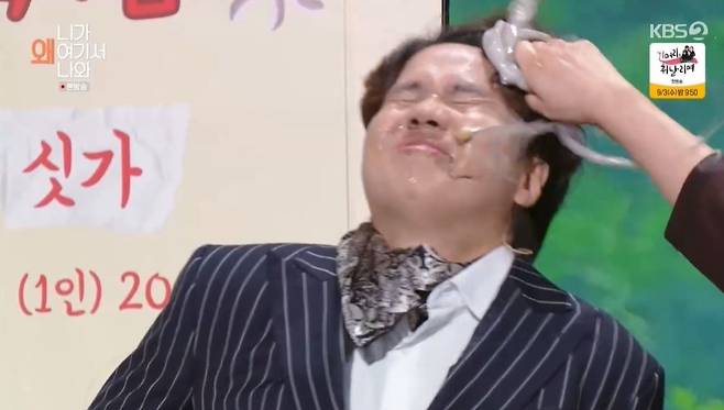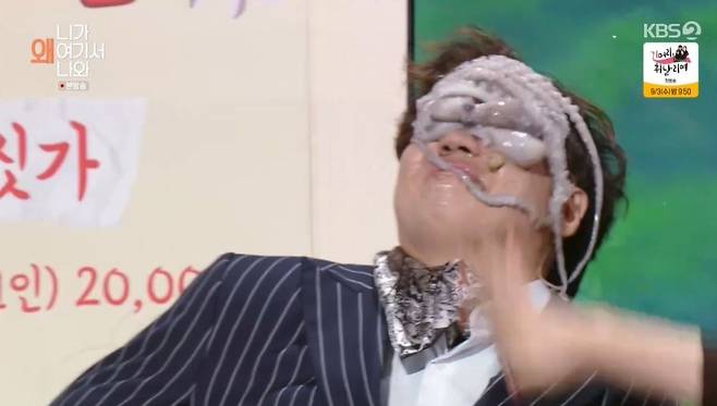 김영희가 정승환 얼굴에 낙지를 투척했다.