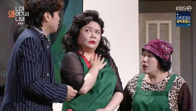 그런 가운데 '니가 왜 여기서 나와' 코너에선 김영희, 이현정, 김지영이 막장 드라마에 악역으로 나온 정승환이 오자 메뉴판이 없다고 거짓말했다.
