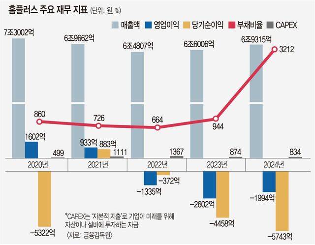 인수 이후 MBK의 최우선 과제는 홈플러스의 성장이 아닌 빚 갚기가 됐다. MBK는 전국 매출 1위였던 경기 부천상동점을 포함해 점포 23곳의 문을 닫고 15곳을 매각 후 재임차해 4조원가량을 유동화해 대출금을 갚는 데 썼다. 2015년 이후 홈플러스의 자본적 지출(CAPEX·기업이 미래를 위해 자산이나 설비에 투자하는 자금)은 연간 1000억원 안팎에 그쳤다. 이 기간 경쟁사인 이마트가 지출한 CAPEX(연평균 4400억원)의 4분의 1 수준에도 못 미쳤다.
