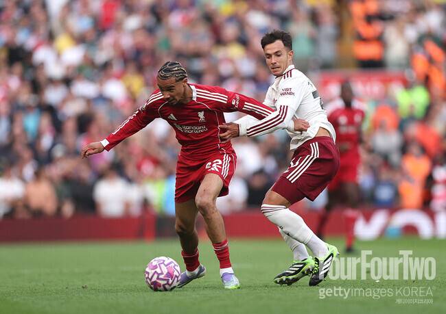 정규시간 1분을 남겨 놓은 상황, 양 팀의 교체카드가 각자의 상황을 대변했다. 추격이 시급해진 아스널은 후반 44분 마두에케를 빼고 '15세 초신성' 다우먼을 투입했다. 한 골을 지켜야 하는 리버풀은 비르츠를 빼고 엔도를 투입하며 굳히기에 들어갔다.