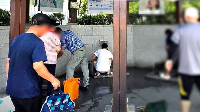 ▲ 샘터에서 물 받는 강릉시민들