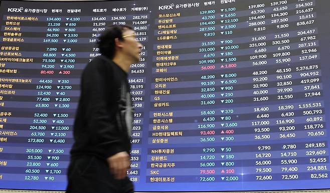 | ▲ 서울 여의도 한국거래소 홍보관에서 한 시민이 전광판 앞을 지나고 있다. 2024.1.17 |