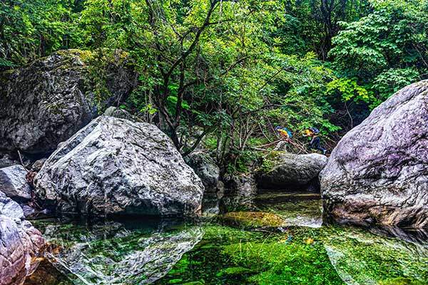 고려시대 사냥꾼에게 쫓기던 멧돼지가 김이 모락모락 피어나는 계곡물에 몸을 담그고 상처가 아물었다는 온천수가 덕구온천이다. 외상과 피부질환 치료에 효험이 있다는 사실을 알게 된 주민들이 노천온천탕으로 만들어 사용해 왔다. 산행은 온정골과 옛재능선길 두 코스를 이용할 수 있는데, 옛재능선길을 통해 능선을 따라 정상에 선 뒤 온정골로 내려와 덕구온천으로 원점회귀하는 코스가 인기 있다.