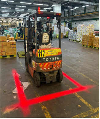 이 안전등은 지게차 양측과 후방에 부착돼 지면에 사각형 빛을 투사한다. 보행자는 지게차 주변 접근금지 범위를 시각적으로 쉽고 빠르게 인식할 수 있어 충돌사고 예방 효과가 클 것이라는 게 공사측 설명이다.