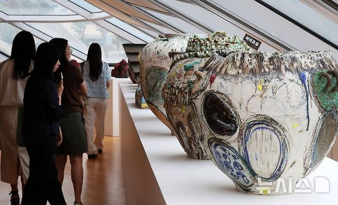 [서울=뉴시스] 김혜진 기자 = 1일 오전 서울 중구 동대문디자인플라자(DDP)에서 열린 디자인 마이애미 인 시추 서울 전시에서 관람객들이 전시를 관람하고 있다.