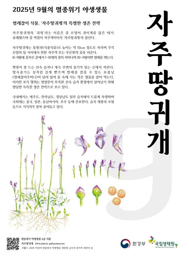 자주땅귀개 등 멸종위기종 정보는 국립생태원 홈페이지(nie.re.kr)에서 확인할 수 있다.