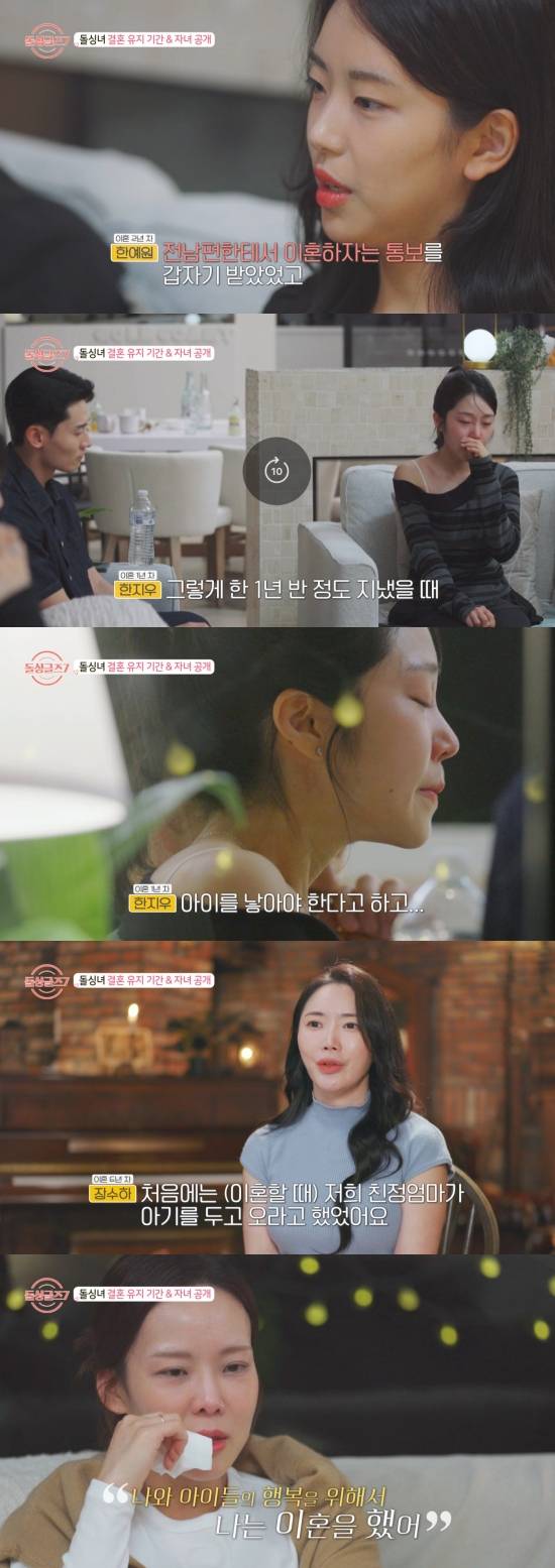 먼저 명은은 "결혼 유지 기간은 10개월, 자녀는 없다"고 밝혔고, 수하는 "4년의 결혼 생활 끝에 아홉 살 남자아이를 양육하고 있다"고 고백했다.