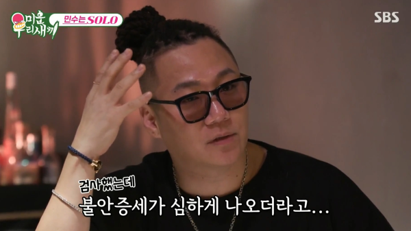 윤민수는 "옛날에 가보고. 작년에 안 좋은 일도 있고"라며 "불안 증세가 심하게 나오더라고"라며 시청자들에게 충격을 주었다. 또 "약 받아서 먹고 있다. 잠을 잘 못 자니까 잠 오는 약도 좀 받고"라며 불안 증세와 함께 불면증에 시달리고 있다고 밝혔다.