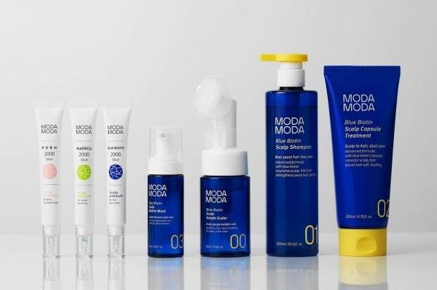모다모다는 이날 탈모케어 제품군 '블루비오틴 스칼프' 7종을 다이소 전용으로 출시했다.