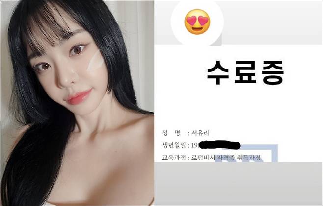 서유리는 지난달 31일 자신의 계정에 최근 취득한 수료증의 일부를 게재했다.
