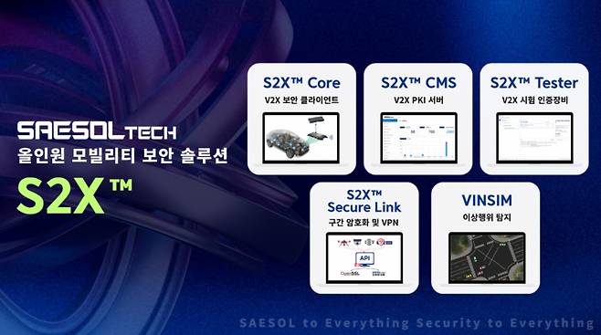 새솔테크는 자율주행차와 모빌리티 서비스들이 데이터를 주고받는 V2X(차량 사물 통신) 통신 관련 보안 솔루션을 개발한다.