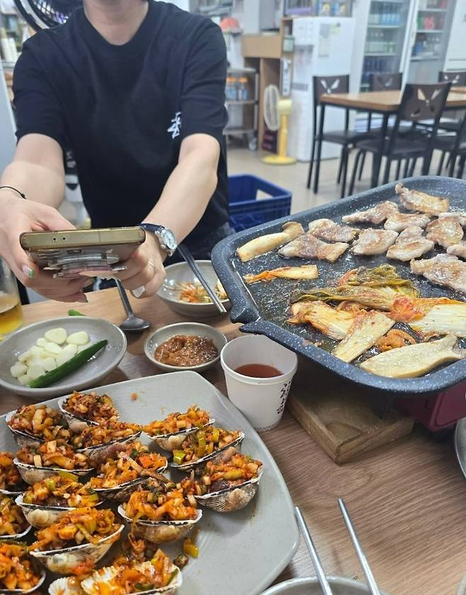 공개된 사진에는 식당에서 편안한 차림으로 음주를 즐기고 있는 장윤정의 모습이 담겨있다. 삼겹살에 꼬막무침까지, 군침 도는 메뉴가 시선을 사로잡는다.