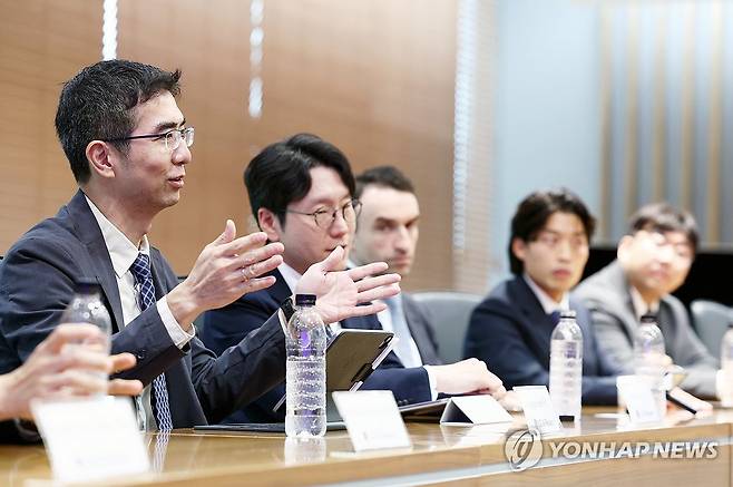 (서울=연합뉴스) 이홍락 LG AI연구원 공동 연구원장이 1일 서울 강서구 LG AI연구원에서 더글라스 알렉산더 영국 무역정책 및 경제안보 국무상과 면담하고 있다. 2025.9.1 [LG 제공. 재판매 및 DB 금지]
