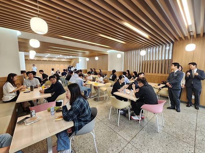 예배가 마친 뒤 교회는 이날 출근길에 나서는 직장인과 등교하는 청년들을 위해 간단한 조식을 마련했다. 시리얼과 빵, 우유, 토스트, 모닝커피 등이 준비돼 성도들의 아침을 채웠다. 바쁜 직장인들은 빵과 우유를 챙겨 회사로 향했고, 여유가 있는 성도들은 식탁에 둘러앉아 삶과 신앙을 나누며 교제했다. 부교역자들은 곁에서 세심한 손길로 섬김을 더했다.