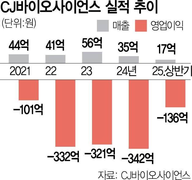 CJ바이오사이언스는 적자 구조 탈피가 시급한 과제다. CJ바이오사이언스는 2021년 101억 원, 2022년 332억 원, 2023년 321억 원의 영업손실을 냈다. 올해도 1분기 78억 원, 2분기 81억 원의 영업손실을 기록 중이다.