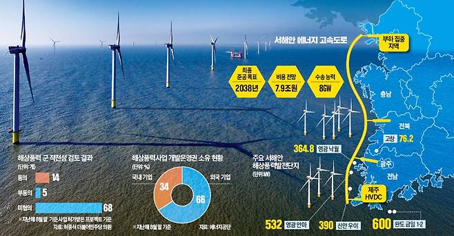 해상풍력은 이 프로젝트의 핵심 발전원이다. 8기가와트(GW) 송전 용량의 절반 이상인 5.5GW 이상을 서해안 해상풍력단지가 책임진다. 해군이 주요 해상풍력단지에 군 작전성 영향 평가를 시행하면 1차 준공 2030년, 최종 2038년으로 계획된 서해안 에너지 고속도로 완성 시점이 늦춰질 것으로 업계는 내다봤다. 이 과정에서 일부 단지는 위치가 조정되거나 아예 원점에서 재검토될 수 있다는 전망도 나온다.