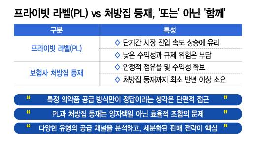 미국 시장 공략의 정답은 'PL 또는 처방집'이 아니라 'PL+처방집'인 셈이다. 속도를 제공하는 PL과 안정성을 보장하는 처방집을 어떻게 조합하느냐에 따라 성패가 갈린다. 업계 관계자들이 "특정 공급 방식만이 정답이라는 생각은 위험하고, 제품별로 다른 맞춤 전략을 세우는 것이 미국 시장 성공의 유일한 해법"이라고 입을 모으는 이유도 여기에 있다.