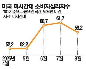 관세발 인플레이션 압력에 미국 중산층 소비심리가 크게 악화된 것으로 나타났다. 저소득층에 이어 중산층으로까지 소비 한파가 확산되는 가운데 고용 악화를 근거로 9월 연방공개시장위원회(FOMC)에서 금리를 내릴 게 유력하다는 전망이 나온다.