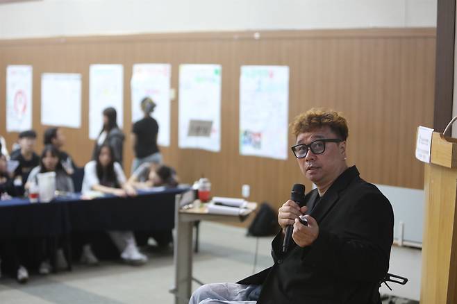 | ▲ 가수이자 방송인인 클론의 강원래 씨는 청소년들에게 ‘도전’에 대해 이야기를 전했다. |