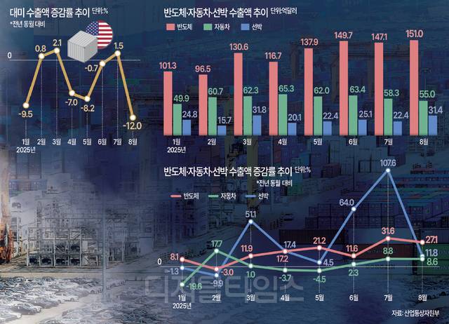 트럼프 행정부의 굳건한 관세 장벽으로 인해 한국의 대미 자동차 수출은 휘청거리고 있다. 한국무역협회에 따르면 올 1~7월 대미 자동차 수출은 182억달러로 작년 동기 대비 15.1% 감소했다. 미국 수출 비중이 높은 현대자동차·기아의 올 상반기 합산 영업이익도 전년 동기 대비 12.7% 줄어든 약 13조원에 그쳤다.