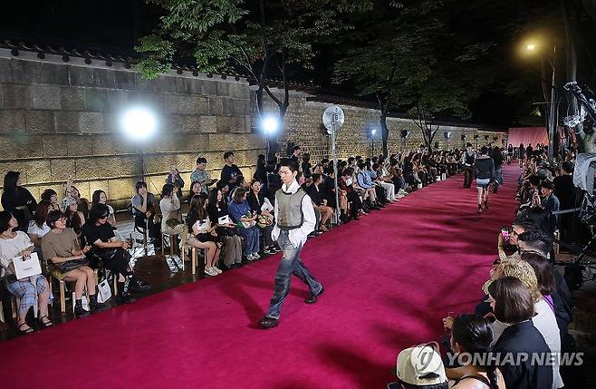 (서울=연합뉴스) 류영석 기자 = 1일 서울 중구 정동 덕수궁돌담길에서 열린 서울패션위크 앤더슨벨 오프닝쇼에서 모델들이 런웨이를 걷고 있다. 2025.9.1