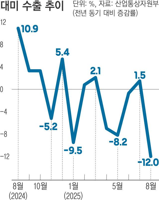 8월 대미 수출액 ‘12%’ 뚝…관세, 코로나만큼 독했다