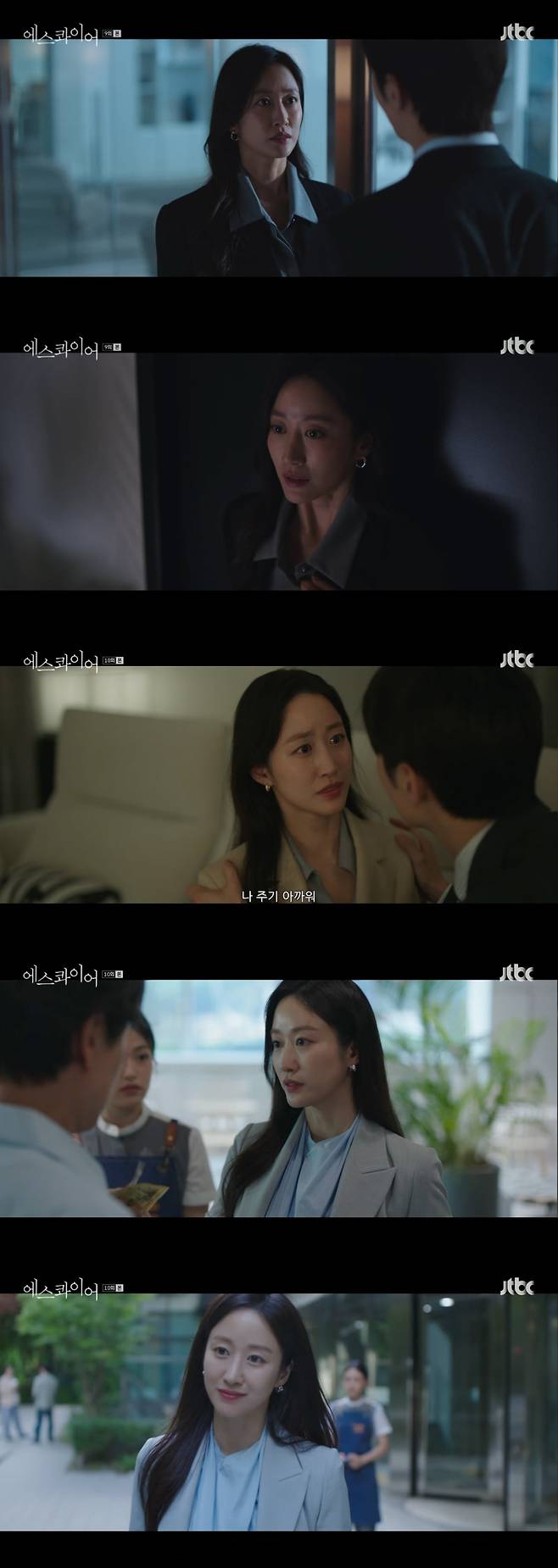 JTBC 토일드라마 ‘에스콰이어: 변호사를 꿈꾸는 변호사들’(이하 ‘에스콰이어’)에서 대형 로펌 늦깎이 어쏘 변호사이지만 뛰어난 능력으로 인정받고 있는 ‘허민정’ 역을 맡아 등장마다 눈길을 사로잡고 있는 전혜빈이 이번에도 존재감을 드러냈다. 지난 30일과 31일 방송된 ‘에스콰이어’ 9,10회에서 본격적으로 로맨스에 불을 지피며 후반부의 전개를 뒤흔든 것.
