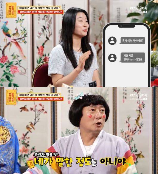 한편 이날 '물어보살'에는 바람피운 남친과 이별한 전직 승무원의 사연도 등장했다. 이날 단아한 스타일로 등장한 사연자는 자신을 25살이라고 소개하며 고민에 대해 “남자친구가 있었는데 바람도 피우고, 저를 좀 힘들게 했다. 그래서 헤어졌다. 이제는 결혼하고 싶은데, 어떤 사람 만나야 하는가. 저랑 맞는 사람은 어떤 사람일까”라고 털어놨다.