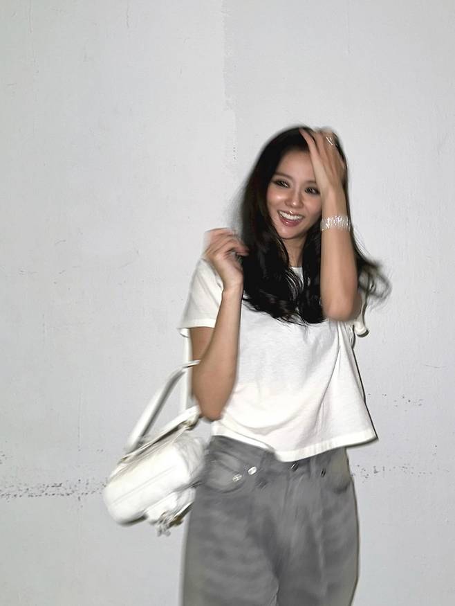 공개된 사진 속 지수는 흰색 반팔 티셔츠에 옅은 그레이색의 와이드 팬츠를 매치해 편안하면서도 스타일리시한 모습을 보여주고 있다.
