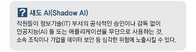 AI를 업무에 활용하는 빈도가 늘어나며 A 씨처럼 회사의 보안 원칙을 피해 AI를 활용하는 이른바 ‘섀도 AI’ 이슈가 보안 업계에 화두로 떠오르고 있다. 직원들이 보안 부서의 정식 허가를 받지 않고 AI를 사용하면서 의도치 않게 회사의 주요 기밀정보가 밖으로 새어 나갈 수 있는 만큼 기업들에는 새로운 위협으로 부상하고 있다.