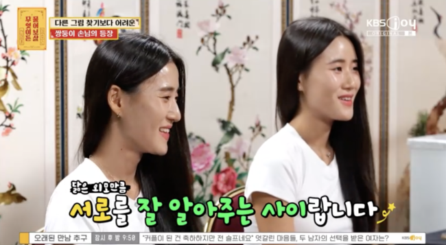 1일 방송된 KBS Joy '무엇이든 물어보살' 331회에는똑 닮은 쌍둥이 자매 사연자들이 등장했다.