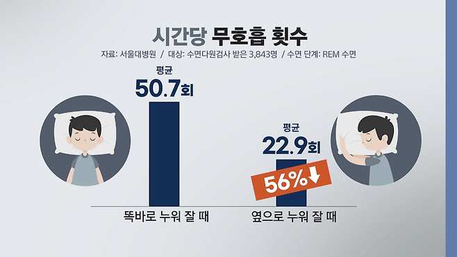 ■ "옆으로만 자도 무호흡 절반 이상 줄어"
